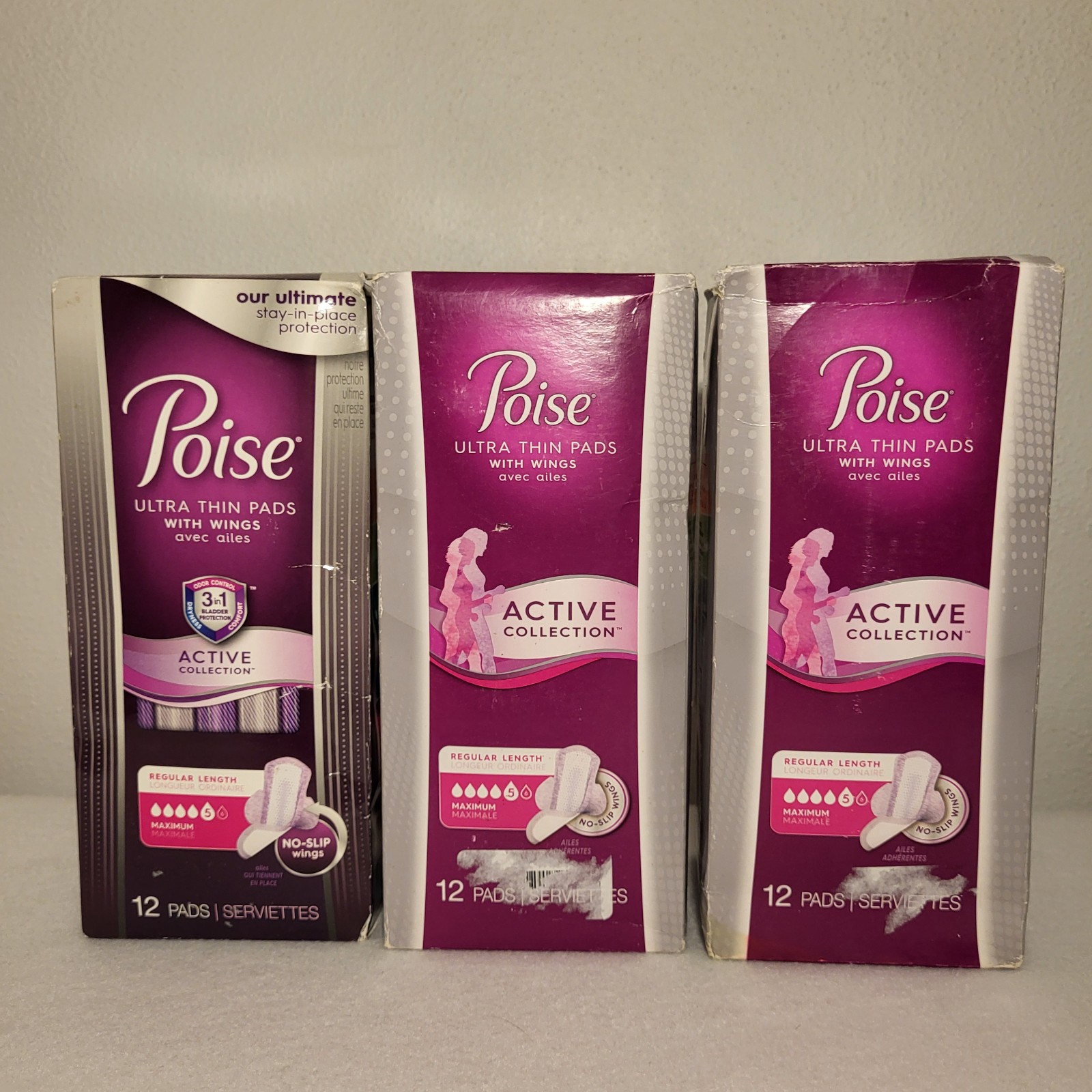 3 packages Poise Active Collection Ultra Thin Pads with Wings
