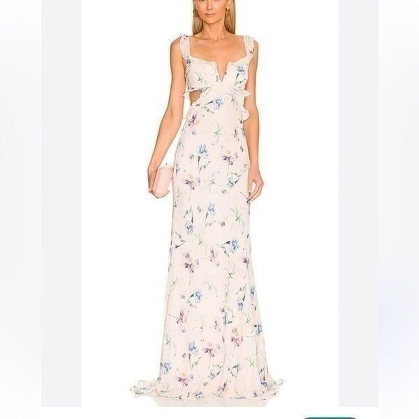 SAU LEE Amelia Floral Cut Out Maxi Gown Blush | Size 4
